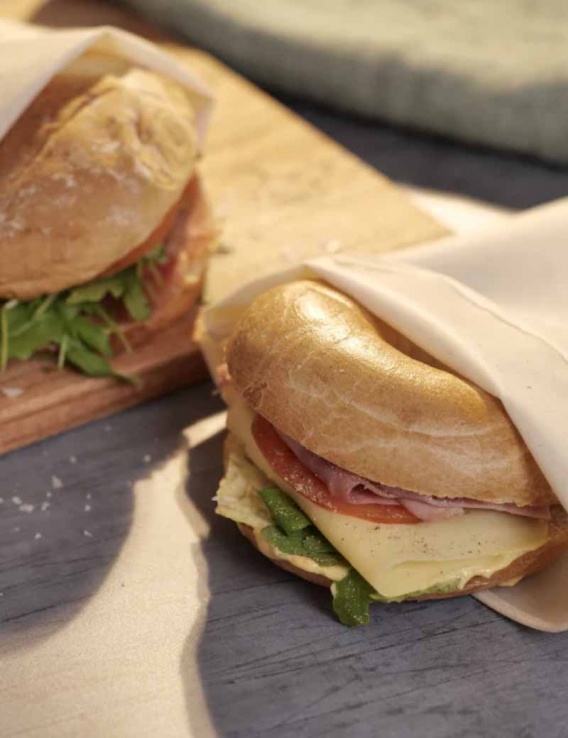 Fabriqué avec un tissu innovant en coton et silicone qui lui donne un aspect enduit, il est idéal pour les aliments un peu humide.
