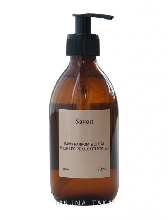 Zéro déchet, il est contenu dans un flacon pompe rechargeable en verre ambré.